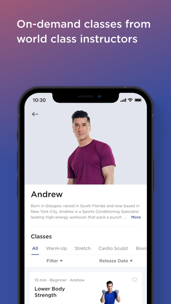 이 앱은 강도, HIIT, 부트캠프, 댄스/댄스 카디오, 요가, 유산소 스컬프트, 필라테스, 스트레칭 및 명상, 복싱, 바레 등 다양한 운동 옵션을 제공합니다. 사용자는 이러한 상호 작용 운동 중에서 선택하여 스튜디오 경험을 거실로 가져올 수 있습니다.